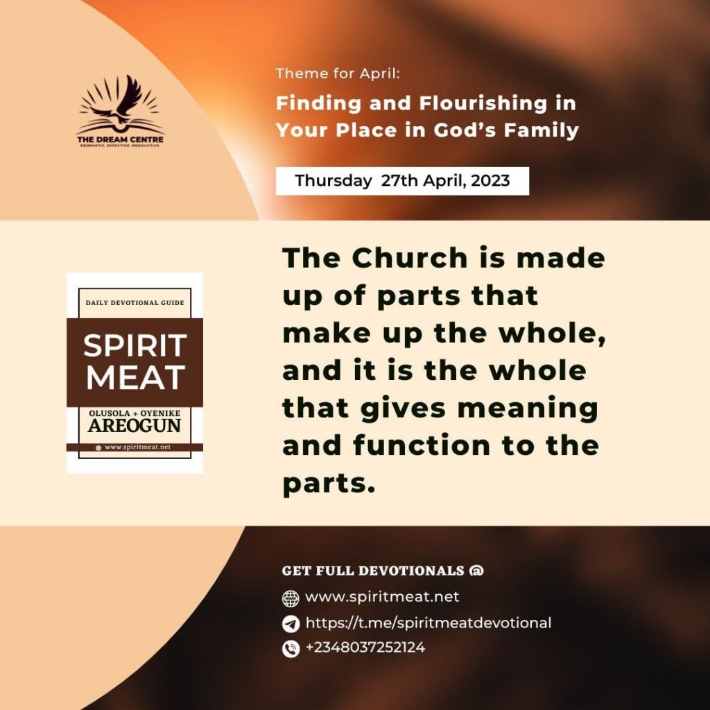 PRAYER: I will play my part in the Body of Christ as destined by God in Jesus’ name. Amen!
