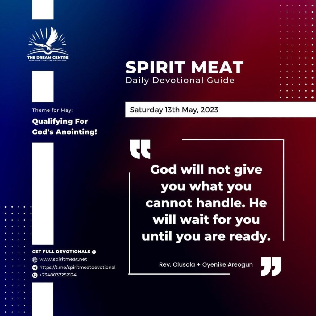 God will not give you what you cannot handle. God will wait for you until you are ready.