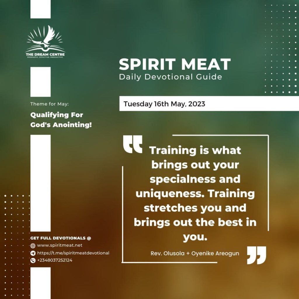 Are you going through some training now? Go through it properly. Stop fighting your trainer. Stop reacting to training. Reacting to training is the ticket to failure in life. Embrace training and you will qualify for the anointing.