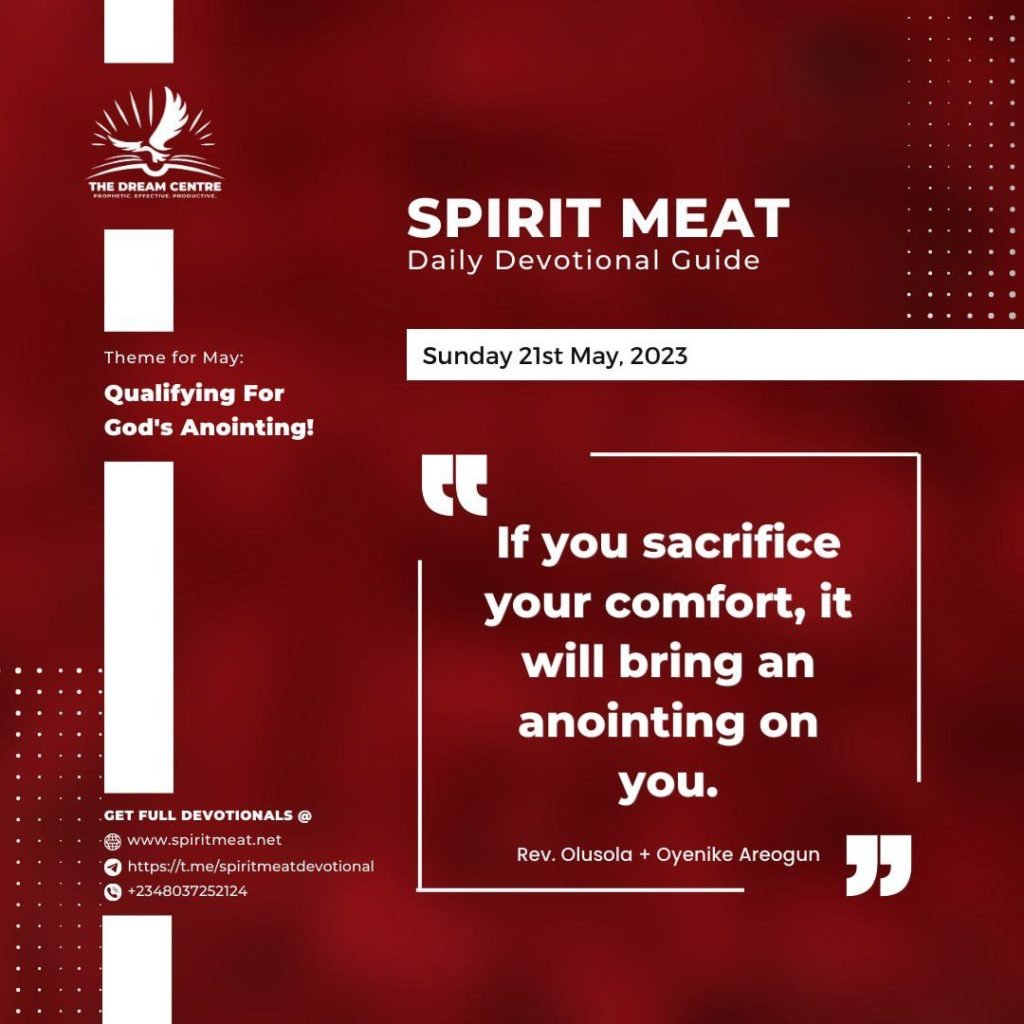 God also anoints right sacrifices. Paul said the things that were gain to him, he counted them loss so that he could win Christ. The sacrifice could be the sacrifice of your time. God can wake you up in the night and say, “I want you to spend the next three hours praying.” If you sacrifice your comfort, it will bring an anointing on you.