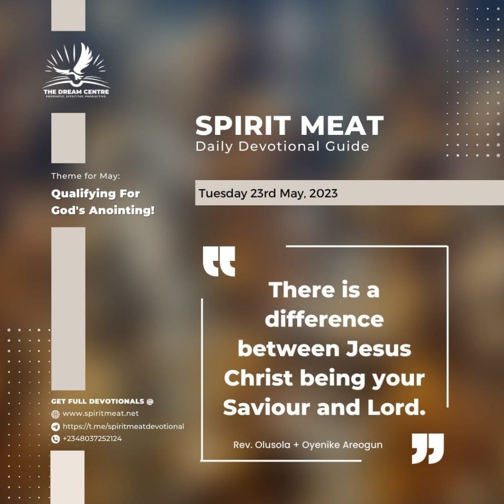 It is when Jesus becomes your Lord that the anointing begins to flow into your life. For as long as Jesus remains your Saviour, you are just a recipient but will not become a distributor of the anointing or other treasures of the Kingdom.
