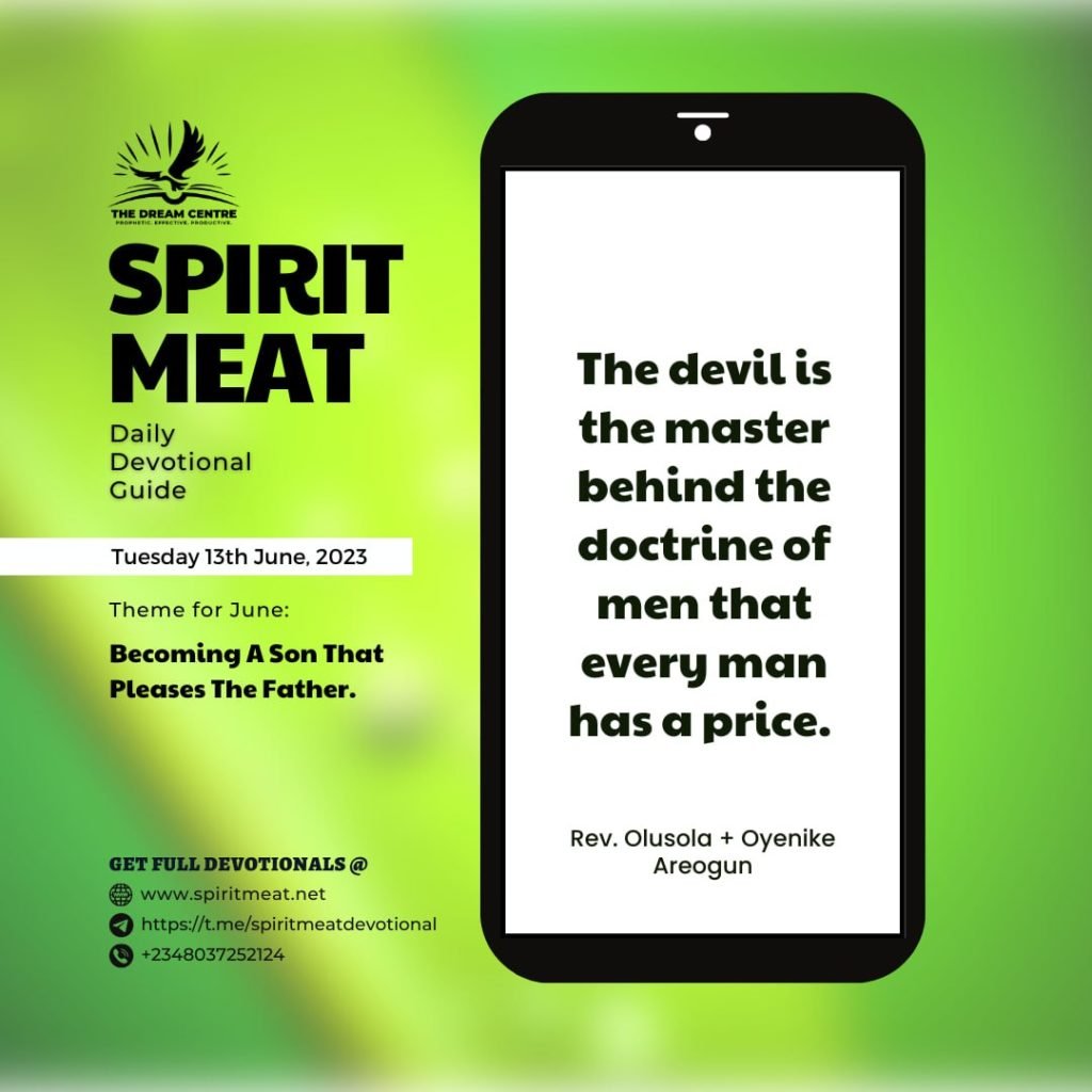 The devil is the master behind the doctrine of men that every man has a price. The devil offered the throne of Egypt to Moses, but the Bible says that Moses preferred the insult of the anointed (to go with the people of God) to the throne of Egypt. What is the devil bargaining for in your life? No wonder Paul said he counted the things that were gains to him as losses to win Christ (Php. 3:7).