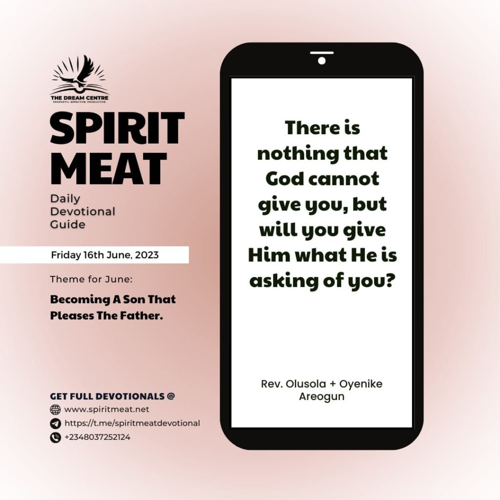 PRAYER: Father, I receive the grace to give to You, everything You ask of me, in Jesus’ name. Amen!