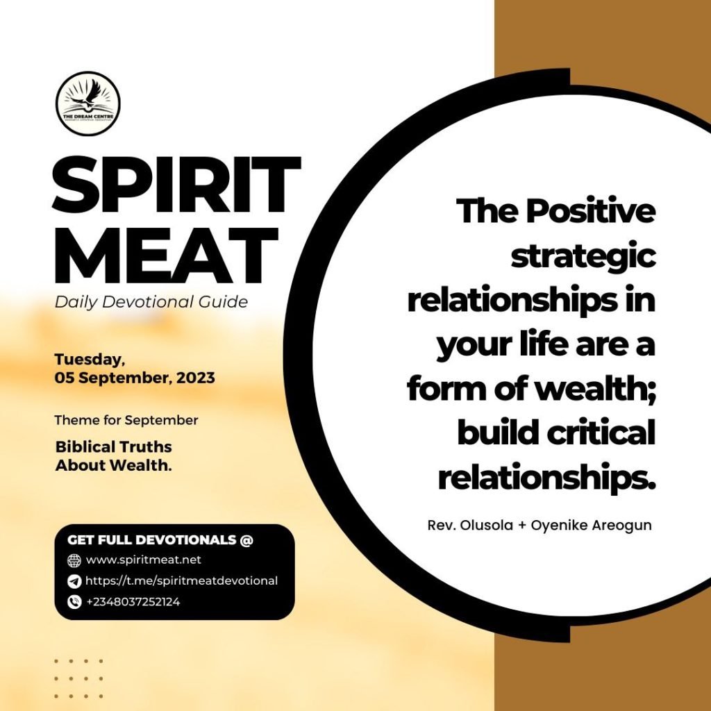 PRAYER: Lord, give me the wisdom to handle and walk well in critical relationships that are to bring wealth into my life in Jesus’ name. Amen!