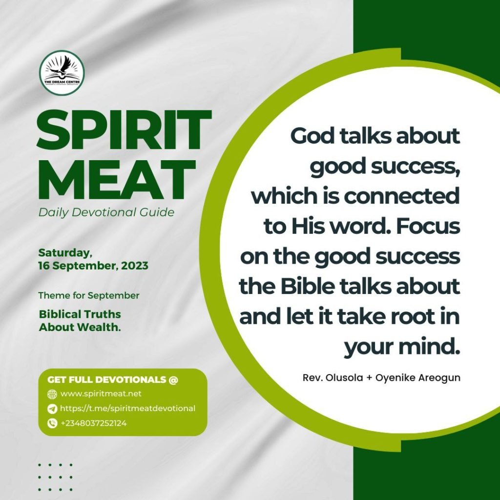 Yesterday, I showed you that the thinking of many believers that “the drive to succeed is evil” is wrong. Our passage today shows that if there is a good success, then there must be a bad success. God talks about good success, which is connected to His word. Focus on the good success the Bible talks about and let it take root in your mind. When you have the correct mindset and godly respect for something, it will affect your life positively.