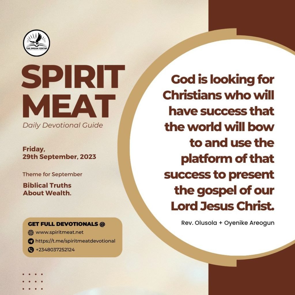 Imagine what a difference it will make in our days if sound, Holy Ghost-filled, and led Christians are holding critical offices and positions in the world. They will have influence, and people will listen to them because they have success that the world respects. Presently, the Church is yet to have the success that the world respects. God is looking for Christians who will have success that the world will bow to and who will use the platform of that success to present the gospel of our Lord Jesus Christ.
