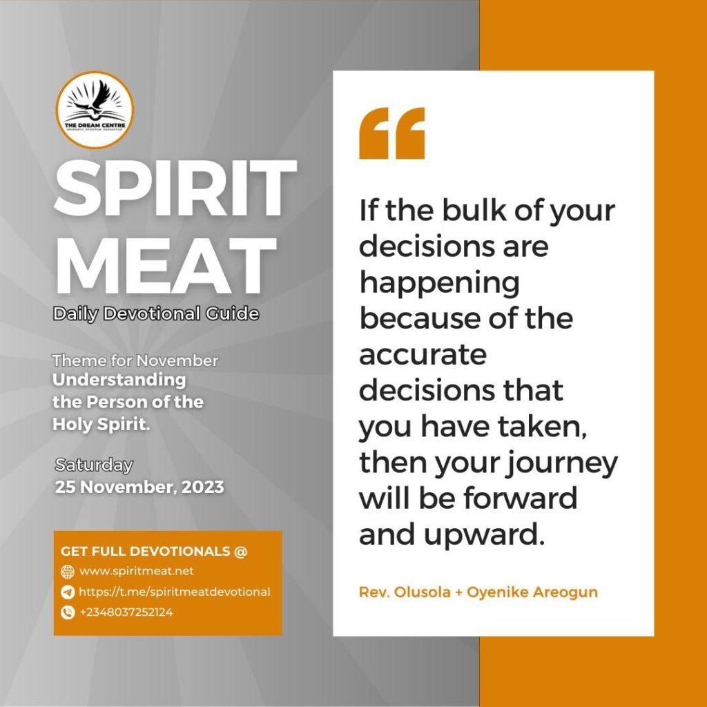 If the bulk of your decisions are happening because of the accurate decisions that you have taken, then your journey will be forward and upward. The Bible says, ‘The path of the just is like a shining light that shineth more and more until the perfect day’ (Proverbs 4:18).