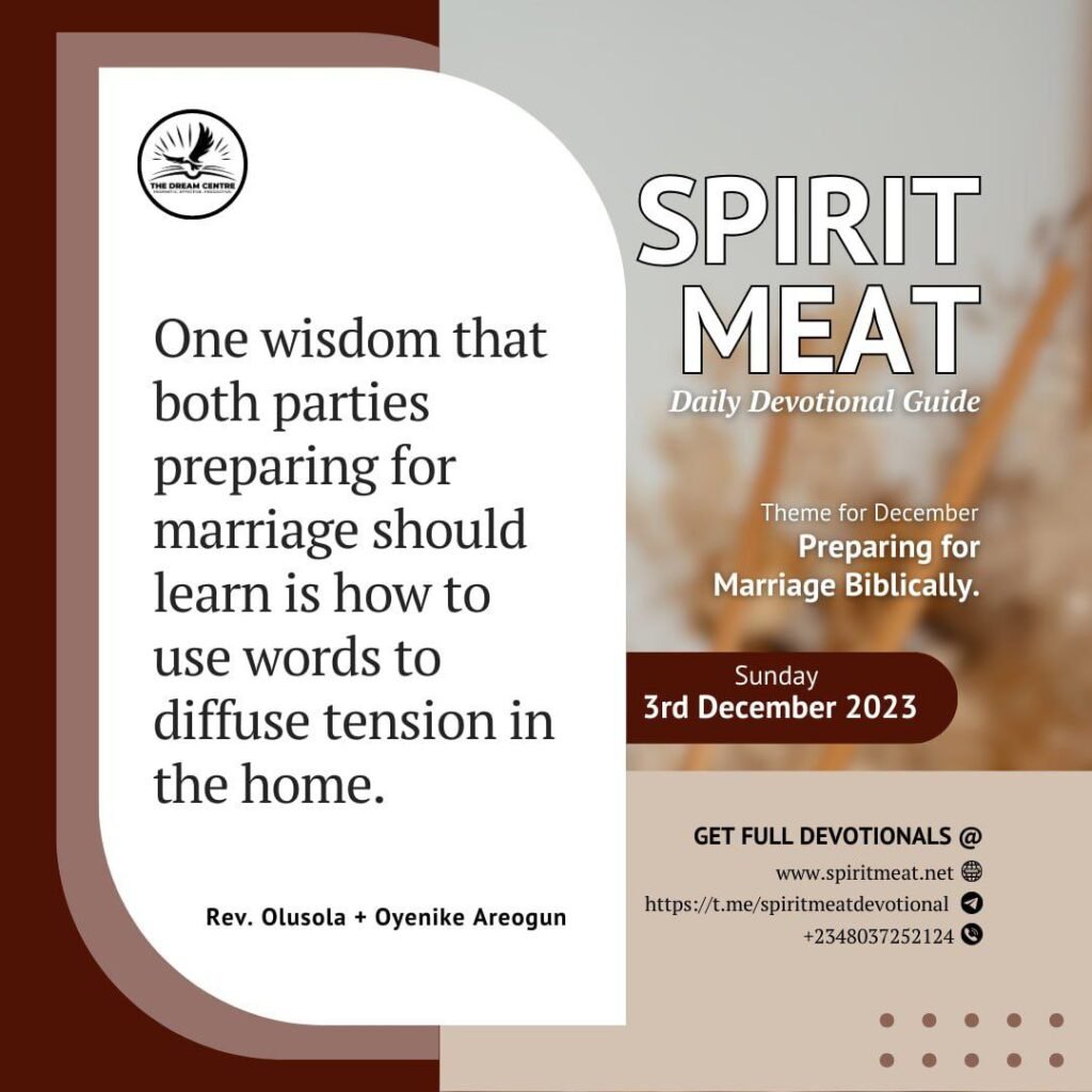03 December 2023: VITAL PREPARATIONS BEFORE MARRIAGE (2) – Proverbs 15:1