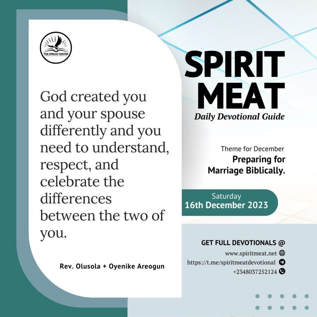 PRAYER: Dear Lord, help me to properly respect the Law of Differences. Help me to appreciate my spouse for whom You made him/her to be in Jesus’ name. Amen!