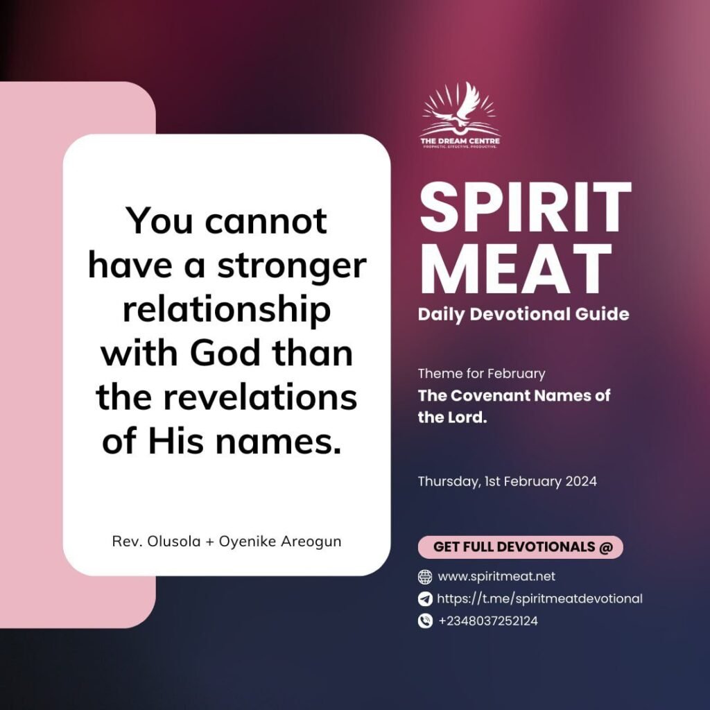 01 February 2024: UNDERSTANDING THE COVENANT NAMES OF THE LORD – Proverbs 18:10, Exodus 6:3