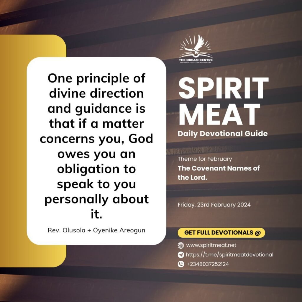 As vital evidence that you belong to God; God will speak to you, guide you and direct you. One principle of divine direction and divine guidance is that if the matter concerns you, God owes you an obligation to speak to you personally.