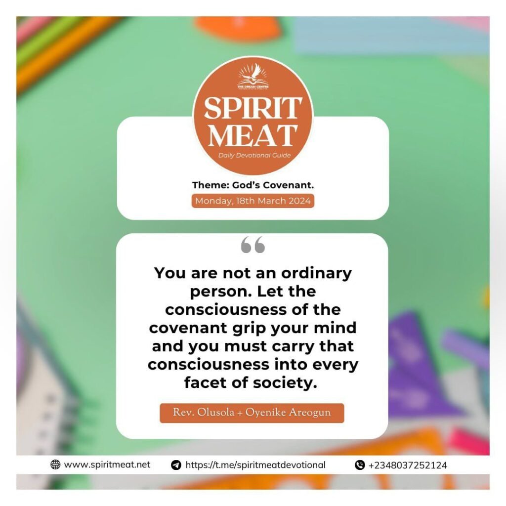 PRAYER: I take authority over every negative and evil consciousness that has gripped my mind. I am baptised with the covenant consciousness of God.