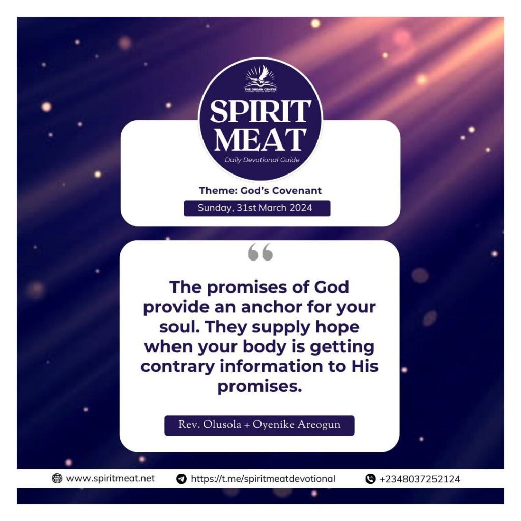 31 March 2024: GOD’S PROMISES PROVIDE AN ANCHOR FOR YOUR SOUL – Hebrews 6:19