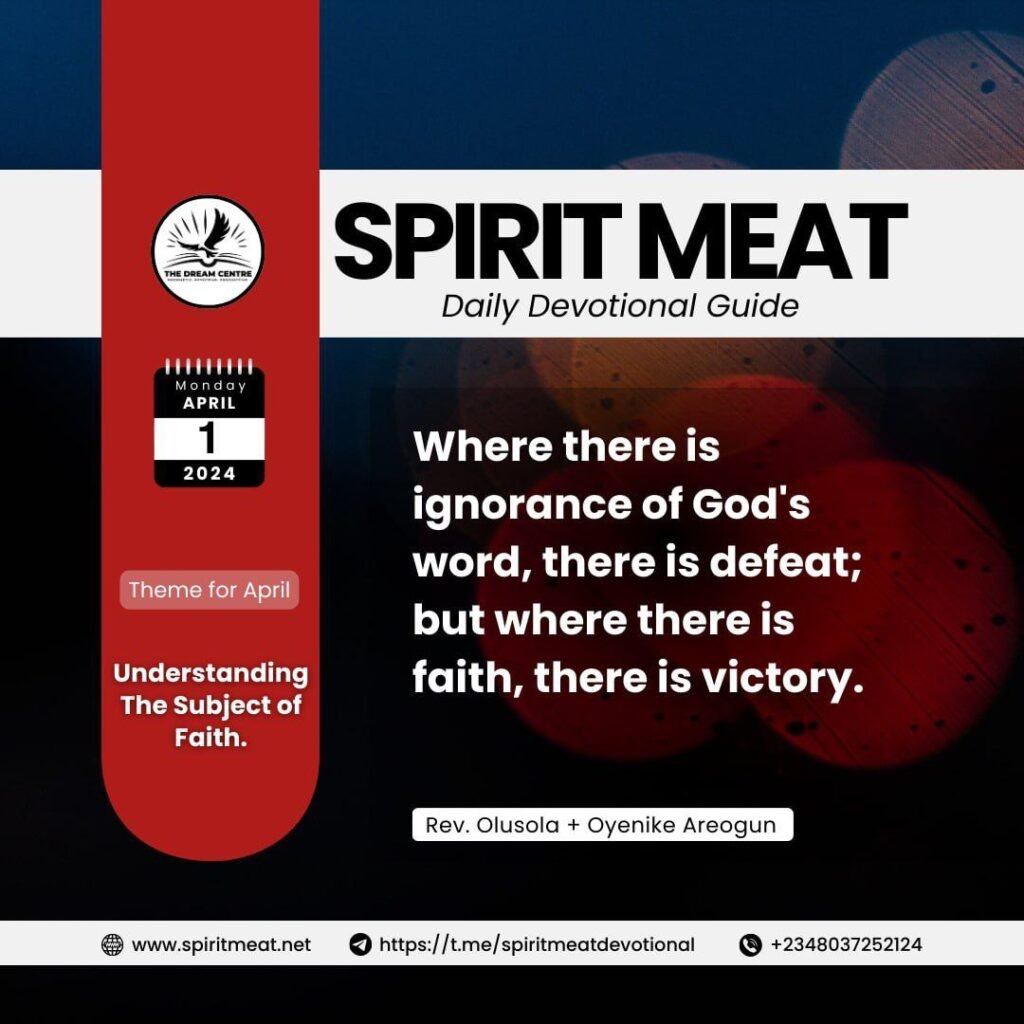 Welcome to the month of April. Our focus for the next 30 days will be on “Understanding The Subject of Faith”. One of the most important tools you will need in the days ahead is FAITH. I want you to take the position of a student in the school of the Holy Spirit and master this subject. Faith is not a crisis occurrence but a process that takes place over time. Lack of faith means no victory. Where there is ignorance of God’s word, there is defeat and where there is faith, there is victory.