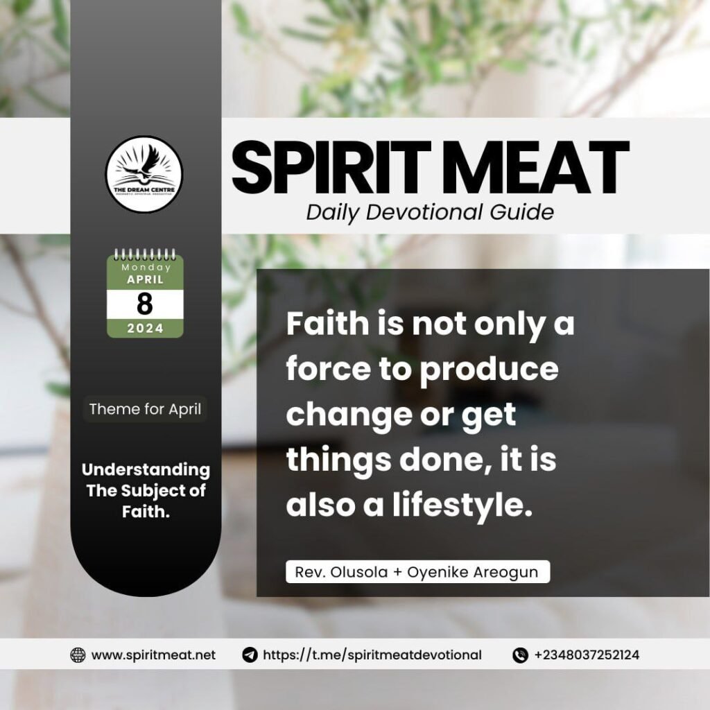 So, I preach by faith, not moved by faces or lack of response; I lay hands on people by faith expecting God to honour His word. I eat by faith; I raise my kids by faith expecting them to turn out right; I refuse to make negative comments about them. Some of you reading this devotional have a condition that you are dealing with within your body; whatever it is, you should understand that faith in God will give you a divine outcome.
