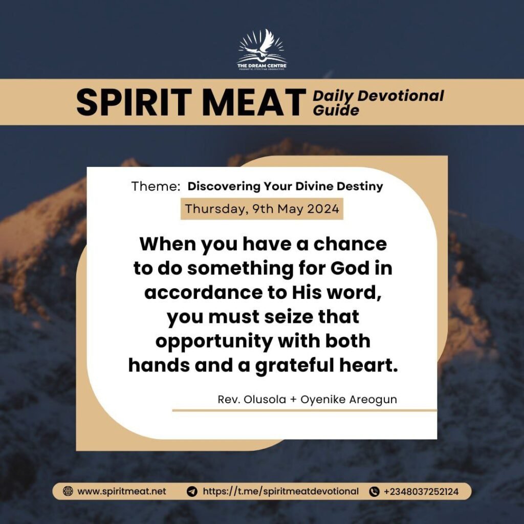 When you have a chance to do something for God in accordance to His word, you must seize that opportunity with both hands and a grateful heart.