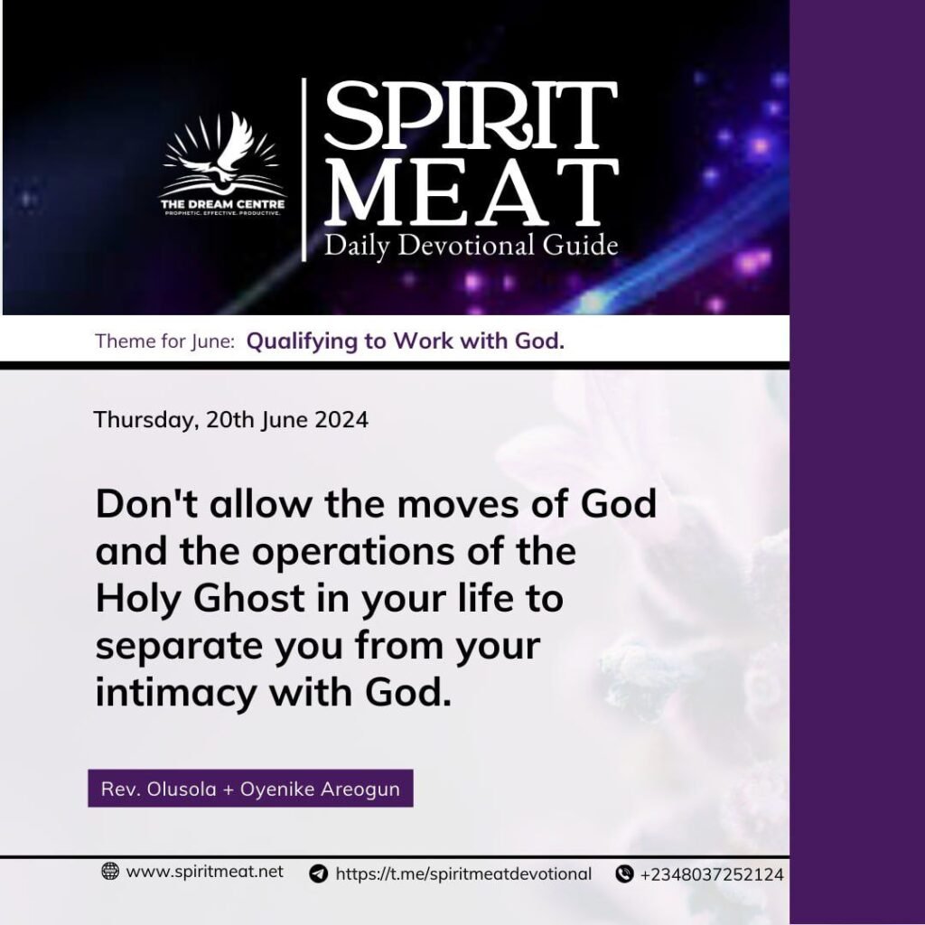 You need to be aware that one of the things that success in life and ministry wants to take away from you is your friendship and intimacy with God. Don’t allow the moves of God and the operations of the Holy Ghost in your life to separate you from your intimacy with God. One of the battles you will have to fight as you begin to succeed in life and ministry is the battle of maintaining your friendship and intimacy with God.