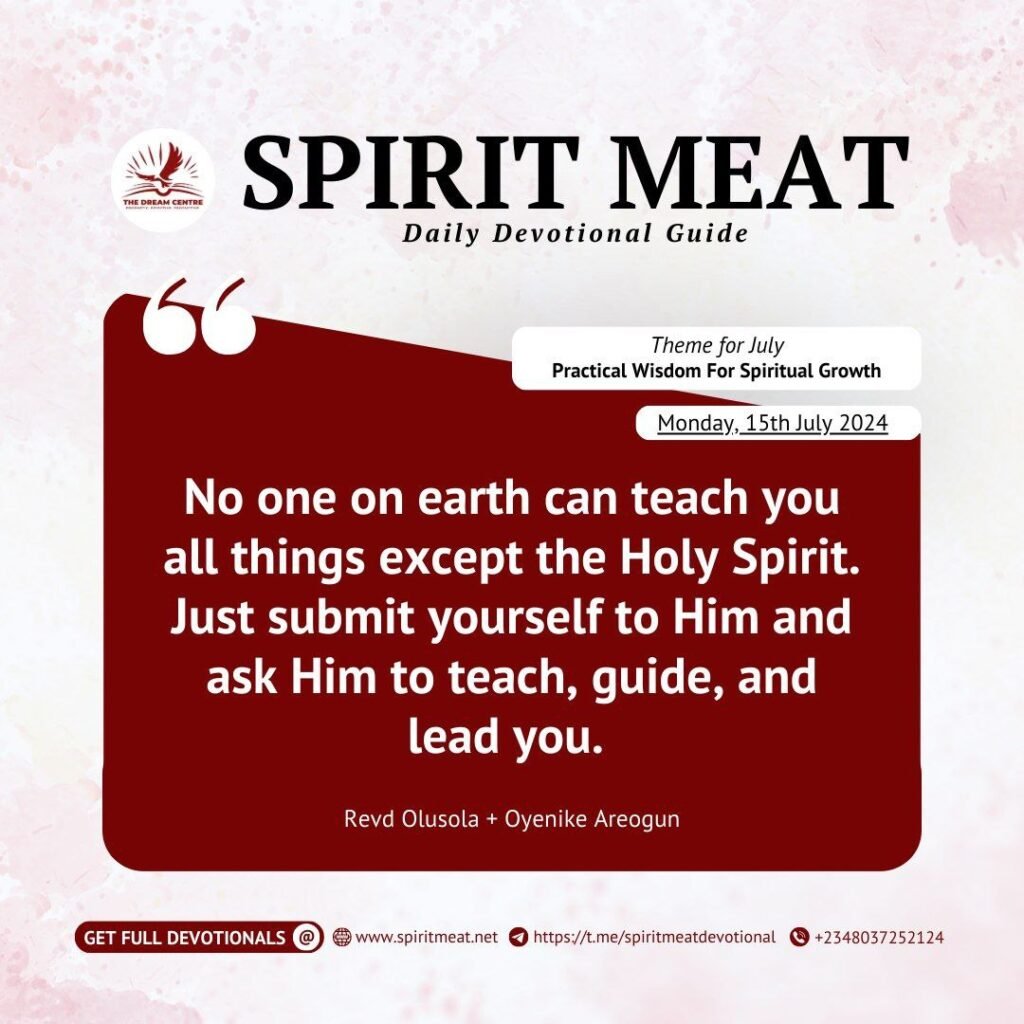 You need to find out how the Holy Spirit teaches and how He guides. The Holy Spirit teaches us all things. No one on earth can teach you all things except the Holy Spirit. Somebody can teach you Chemistry and may not know History. Men are limited in their teachings, but this Teacher will teach you all things.