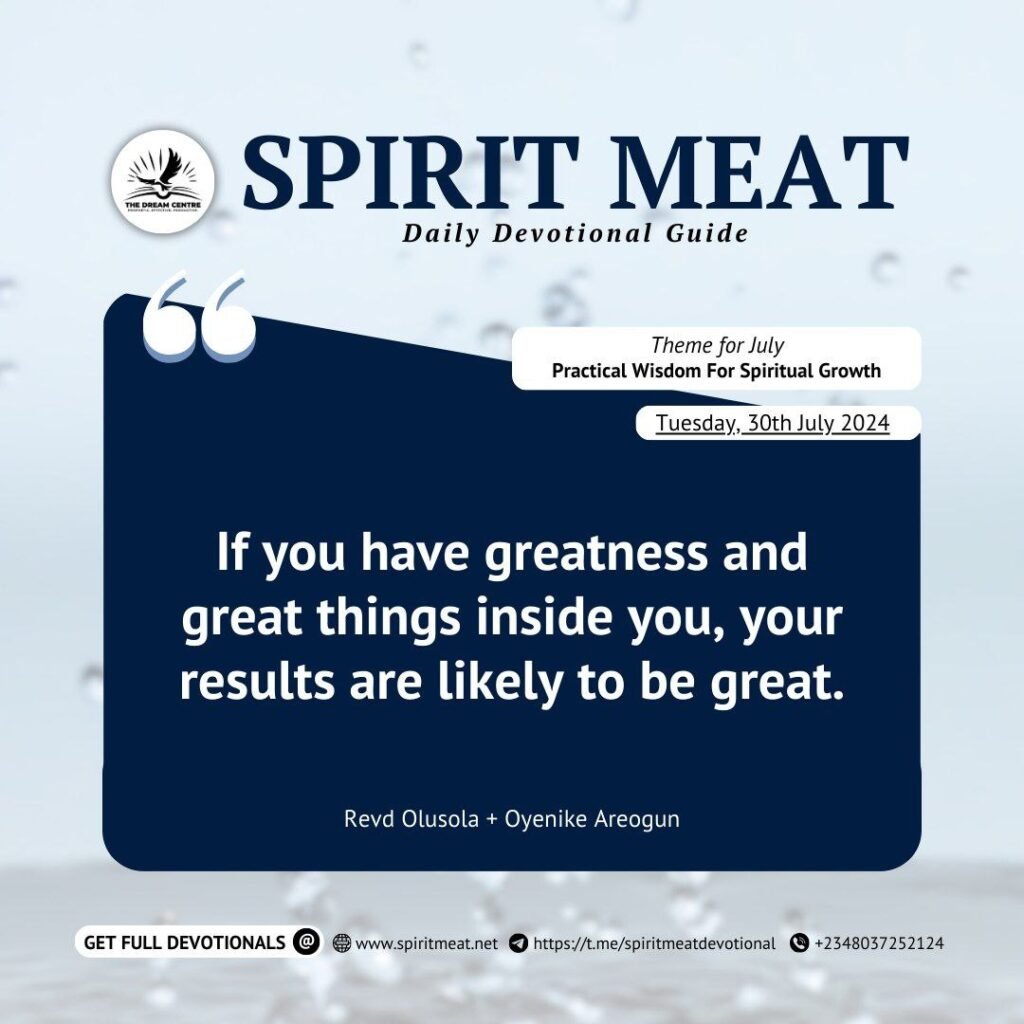 If you have greatness and wonderful things inside you, your results are likely to be great. But if you are small inside, even if men misjudge and think you are big, the smallness inside you will give you away. Mistaken identity cannot be corrected by argument; it is corrected by the flows that ensue from your inside. Ask yourself, “Am I weak or strong inside?”