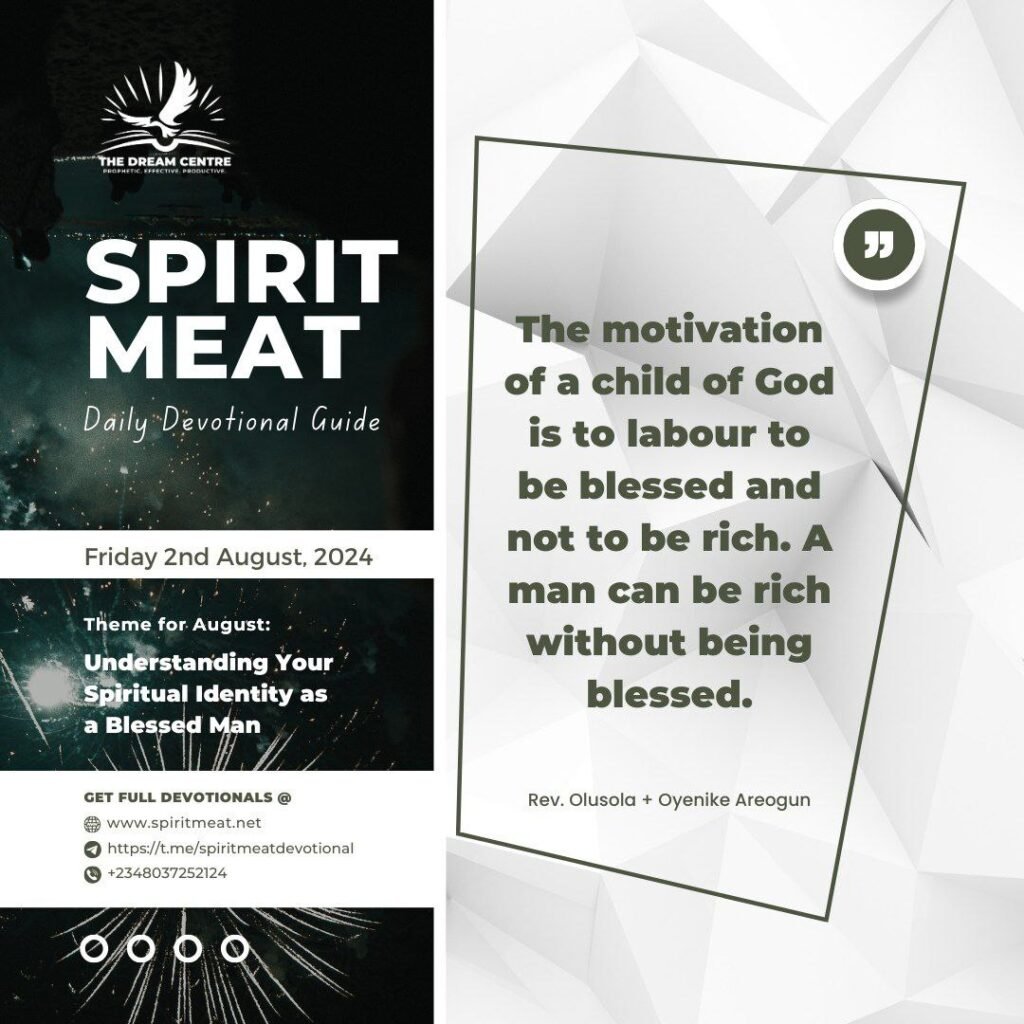 The motivation of a child of God is to labour to be blessed and not to be rich. A man can be rich without being blessed, but a man cannot be blessed without being rich.