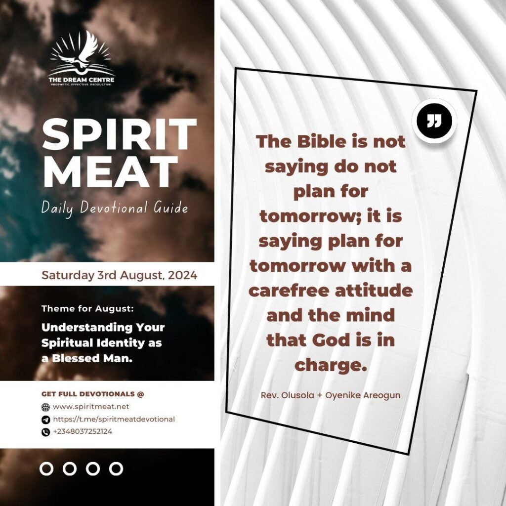 The Bible is not saying do not plan for tomorrow; it is saying plan for tomorrow with a carefree attitude, with the mind that God is in charge: “I am making plans under the watchful eyes of God. My plans are going to be blessed by God.”