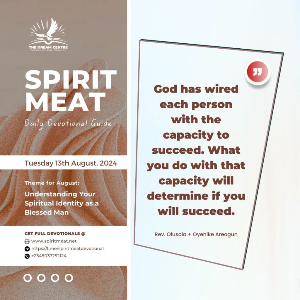 God designed every human being to succeed and to be the best on this planet. There is something God has put in every man to produce impressive results. But you must determine your destiny depending on how you manage that for which you are designed. Remember the Master gave each servant talents to profit according to his abilities. How they laboured with it determined their results (Matthew 25:14-15). In the same way, God has wired each person with the capacity to succeed. What you do with that capacity will determine if you succeed. Adam carried a nature to succeed on the earth because the life of God in him made everything to submit to his control.