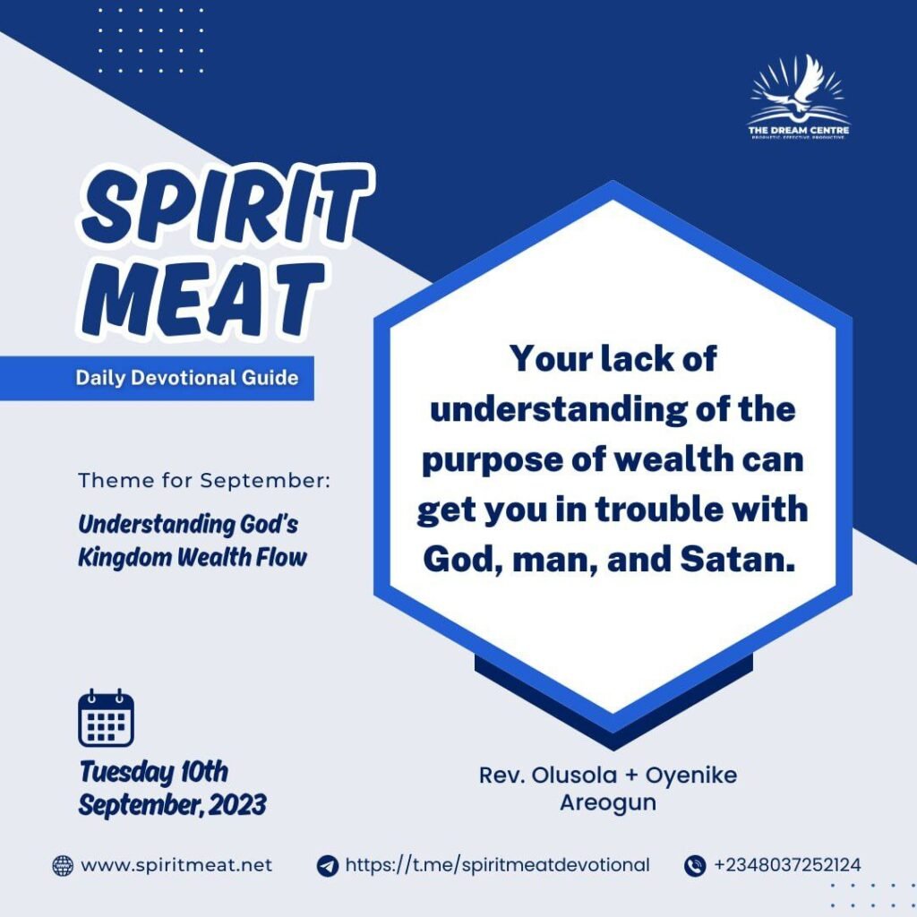 PRAYER: Dear Lord, I repent of every mismanagement and misuse of wealth that you have passed through my hands. I commit to correctly appropriate all funds and resources that flow through me for your purpose in Jesus’ name.