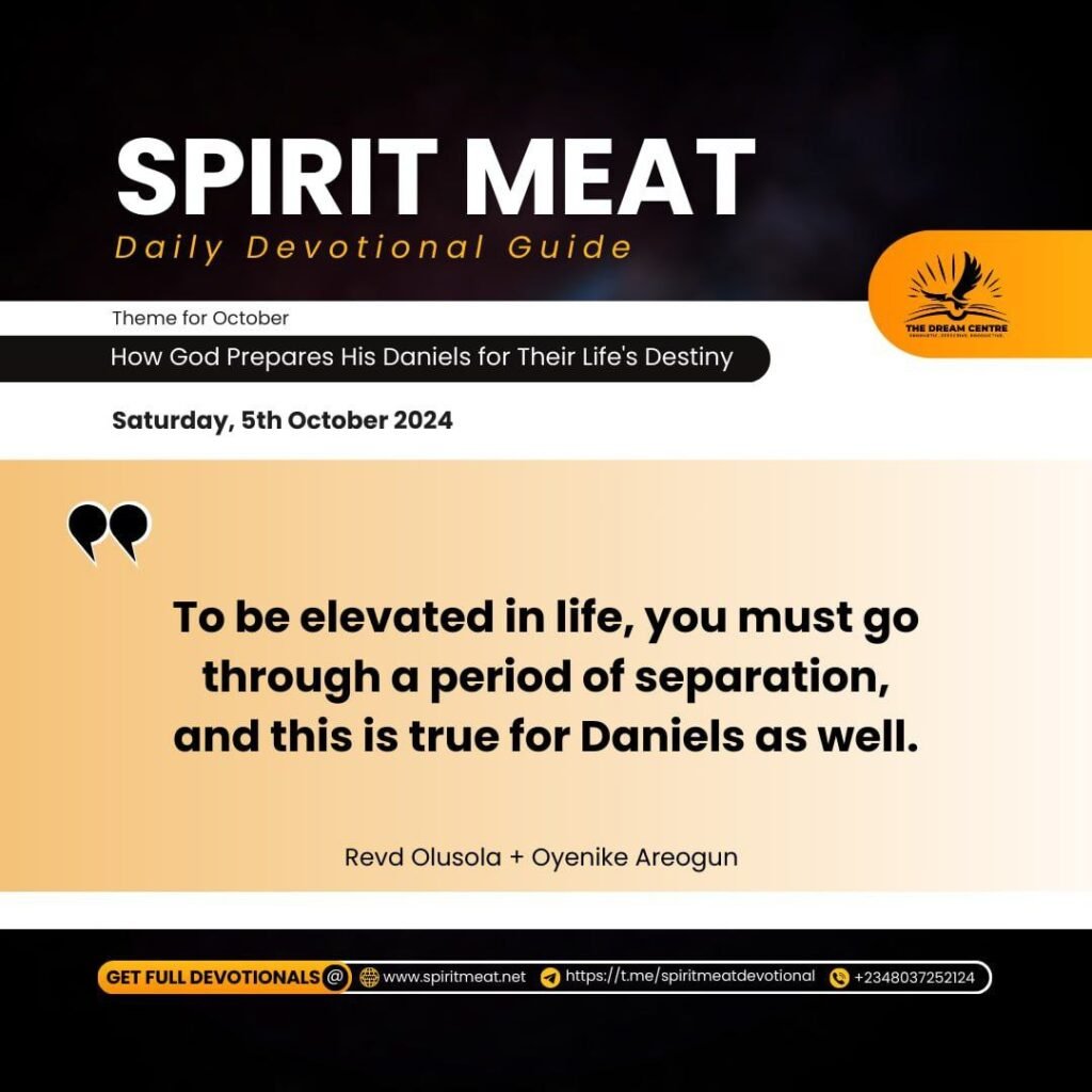 To be elevated in life, you must experience separation, and this is true for Daniels as well. No one is promoted without going through a period of separation. Just as not everyone in a class will be promoted, companies often select certain staff members for special training away from the usual work environment to prepare them for advancement.