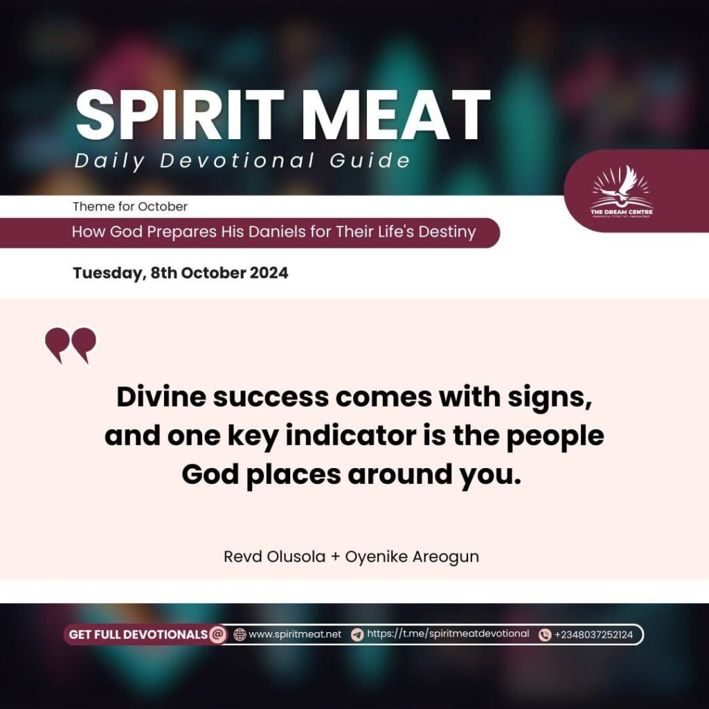 God always prepares you for success and leaves clues along the way. Divine success comes with signs, and one key indicator is the people God places around you. Pay attention to those you frequently interact with; they are often a clue to where you are headed. God brings these connections to give you a taste of future roles or positions you will occupy. If you are destined for ministry or significant wealth in the kingdom, you will often have an early sense or inkling of this.