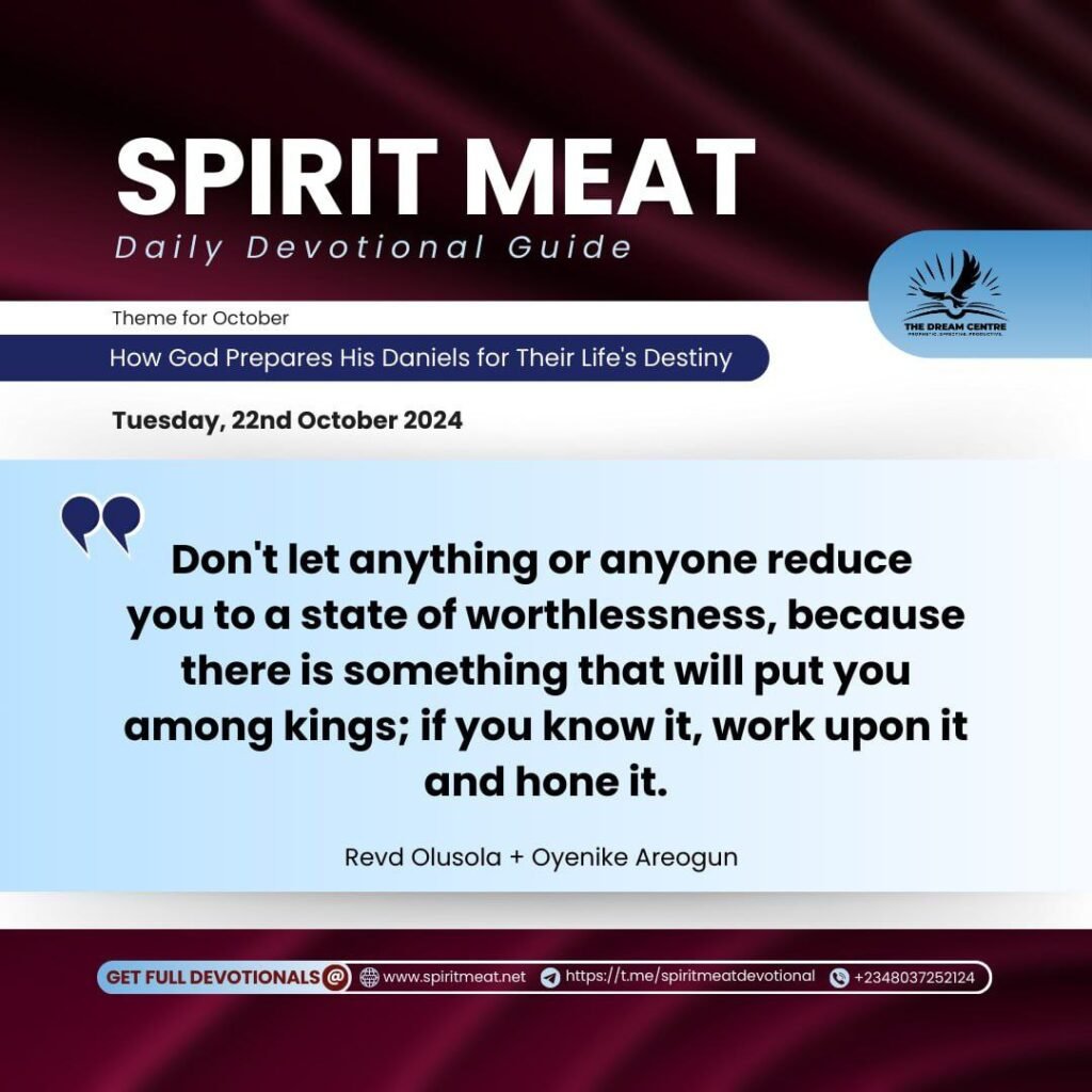 You must be careful of Belial, the worthless one, which reduces people to nothing. Don’t let anything or anyone reduce you to a state of worthlessness because there is something that will put you among kings if you know it, work upon it and hone it. The Bible says, “Do you see a man diligent and skillful in his business? He will stand before kings; he will not stand before obscure men (Pro. 22:29 AMP).” You must not despise what is critical in your life.