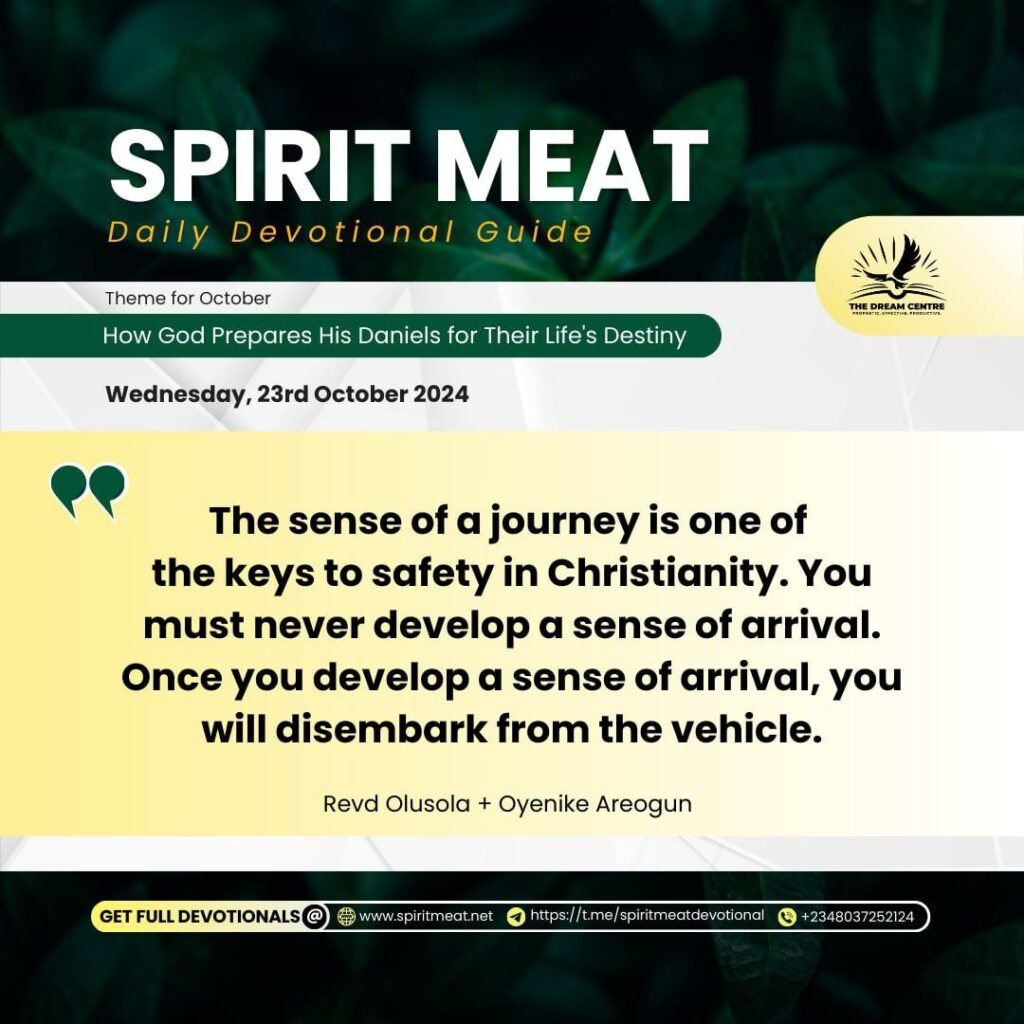 The points you must take today is that the sense of a journey is one of the keys to safety in Christianity. You must never develop a sense of arrival. Once you develop a sense of arrival, you will disembark from the vehicle.
