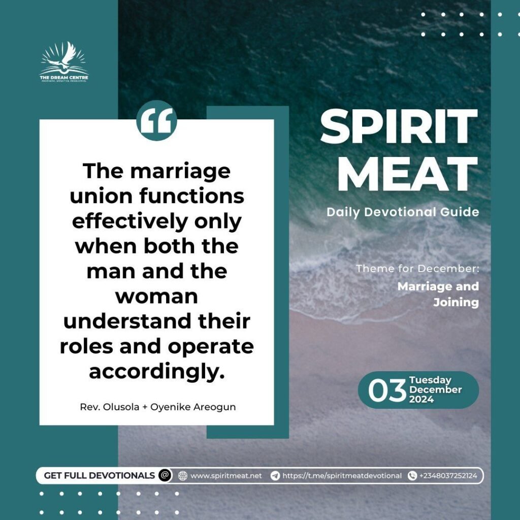 The marriage union functions effectively only when both the man and the woman understand their roles and operate accordingly. There can be no proper joining in marriage if the husband is not fulfilling his role as the head or if the wife is not submitting as she should.