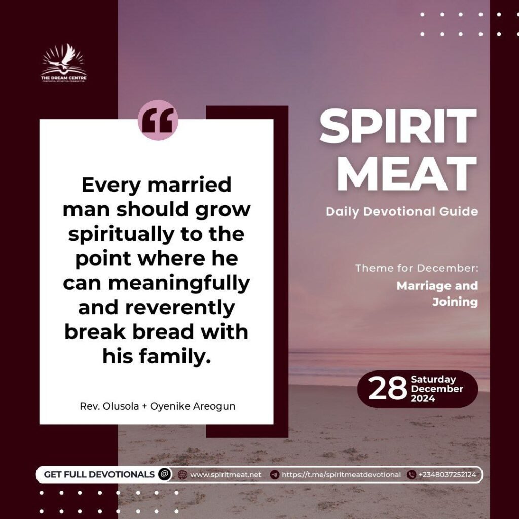 Another powerful act that connects us to divine flows is communion—the bread and the wine. This sacred practice serves as a channel through which God’s grace can manifest in our lives. The communion table stands as a fortress, keeping the devil, death, problems, and sickness at bay for the believer. I firmly believe that every married man should grow spiritually to the point where he can meaningfully and reverently break bread with his family.