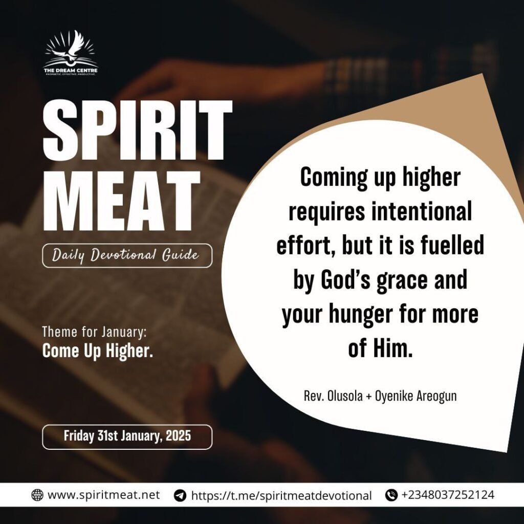 Coming up higher requires intentional effort, but it is fuelled by God’s grace and your hunger for more of Him.