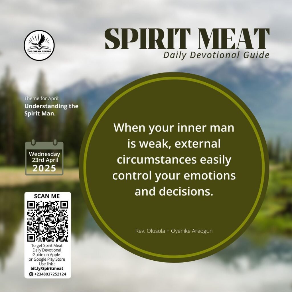 Choose today to consistently strengthen your spirit man. Engage daily in spiritual practices — meditating on Scriptures, praying diligently, and walking closely with the Holy Spirit. As you do this, you will develop a resilient inner strength that overcomes life’s trials and aligns perfectly with God’s divine purposes.