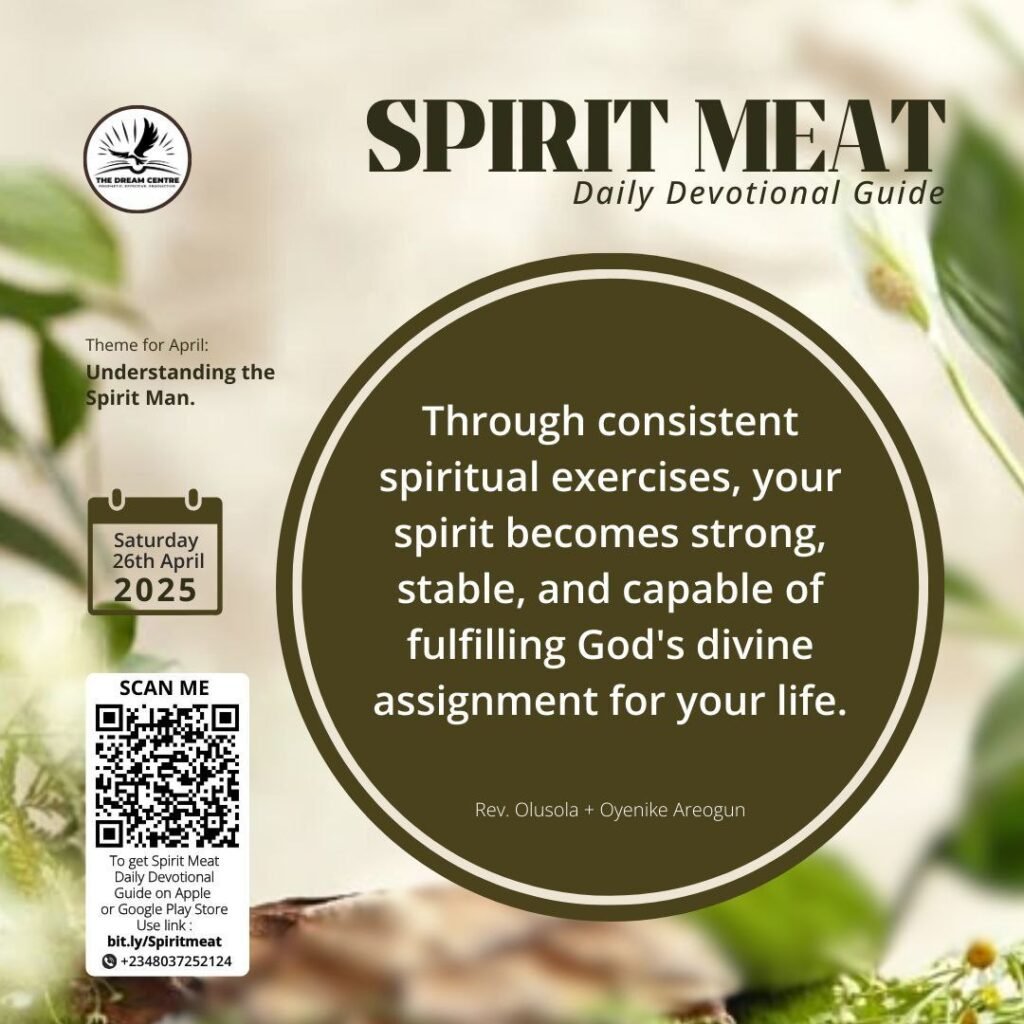 Decide today to commit yourself afresh to spiritual exercises like prayer, studying the Word, meditation, and fasting. Prioritise them as vital parts of your daily routine. Through consistent spiritual exercises, your spirit becomes strong, stable, and capable of fulfilling God’s divine assignment for your life.