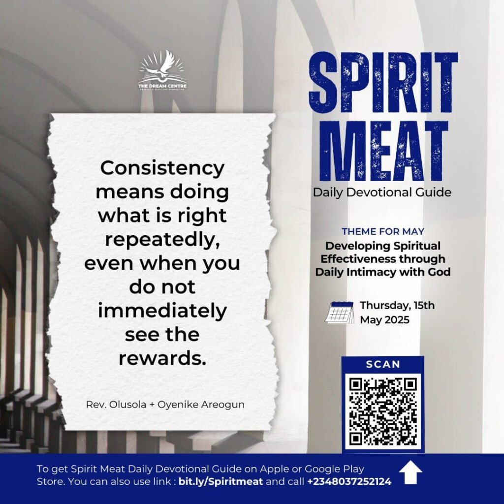 Consistency requires patience and steadfastness. Hebrews 10:36 reinforces this: “For ye have need of patience, that, after ye have done the will of God, ye might receive the promise.” Consistency means doing what is right repeatedly, even when you do not immediately see the rewards. Remember this: Spiritual breakthroughs usually come after consistent obedience, not isolated acts.
