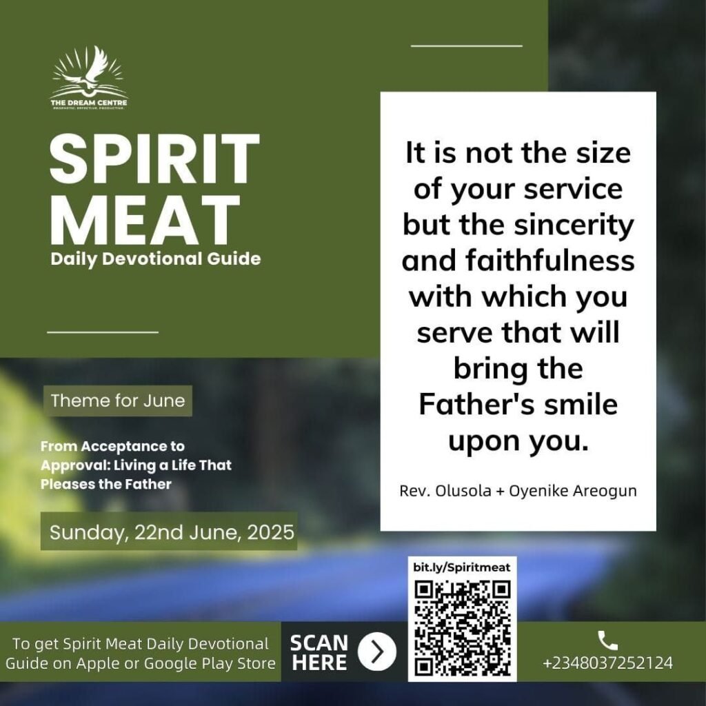 It is not the size of your service but the sincerity and faithfulness with which you serve that will bring the Father’s smile upon you.