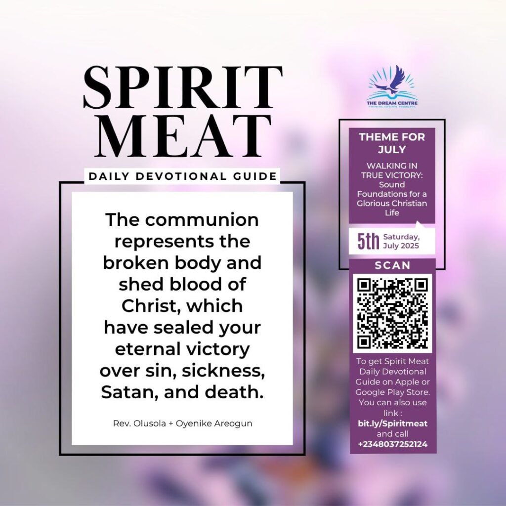 PRAYER: Father, I thank You for the covenant meal You have provided for my victory. Help me to partake of the Lord’s Table with revelation and faith. Let every time of communion renew my covenant rights and silence every voice of accusation and defeat in my life. In Jesus’ name, Amen.
