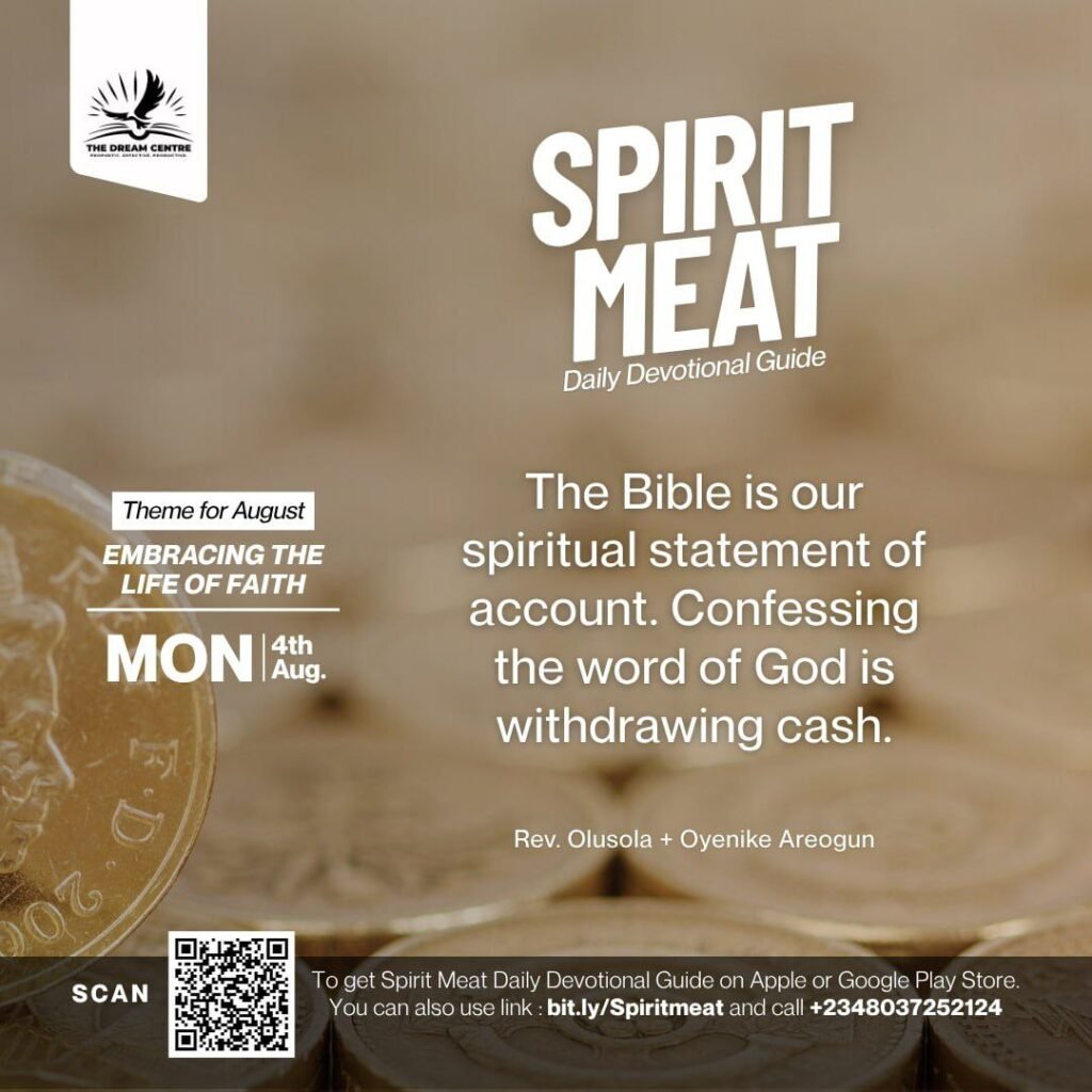 The Bible is our spiritual statement of account. Confessing the word of God is withdrawing cash. In the banking system, there are at least three ways by which you can withdraw cash: you can get cash at an ATM, you can give someone a cheque to withdraw for you from the banking hall, or you can go physically to the bank to withdraw the funds needed from your account. In the same way, confessing the Word of God is declaring what you see in the word of God. It means personalizing it. “The Lord is my shepherd, I shall not want” is a line in your statement of account, but this may not be real in your life yet. God is a shepherd; He is the shepherd of His people, but He may not be the shepherd of your own life.