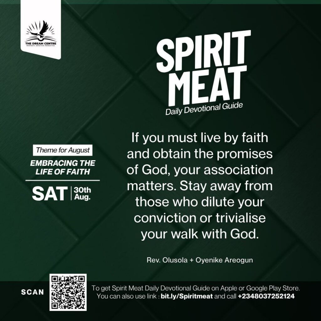 If you must live by faith and obtain the promises of God, then your association matters. Protect your environment and circle. Stay away from those who dilute your conviction or trivialise your walk with God. The devil knows he cannot defeat raw faith, so he tries to replace it with fear or reasonings through what you hear. Choose the truth of God’s Word above all else and stay in the company of those who speak it. When faith is under pressure, don’t entertain voices of doubt—hold on to the promise, and let only truth anchor your heart.