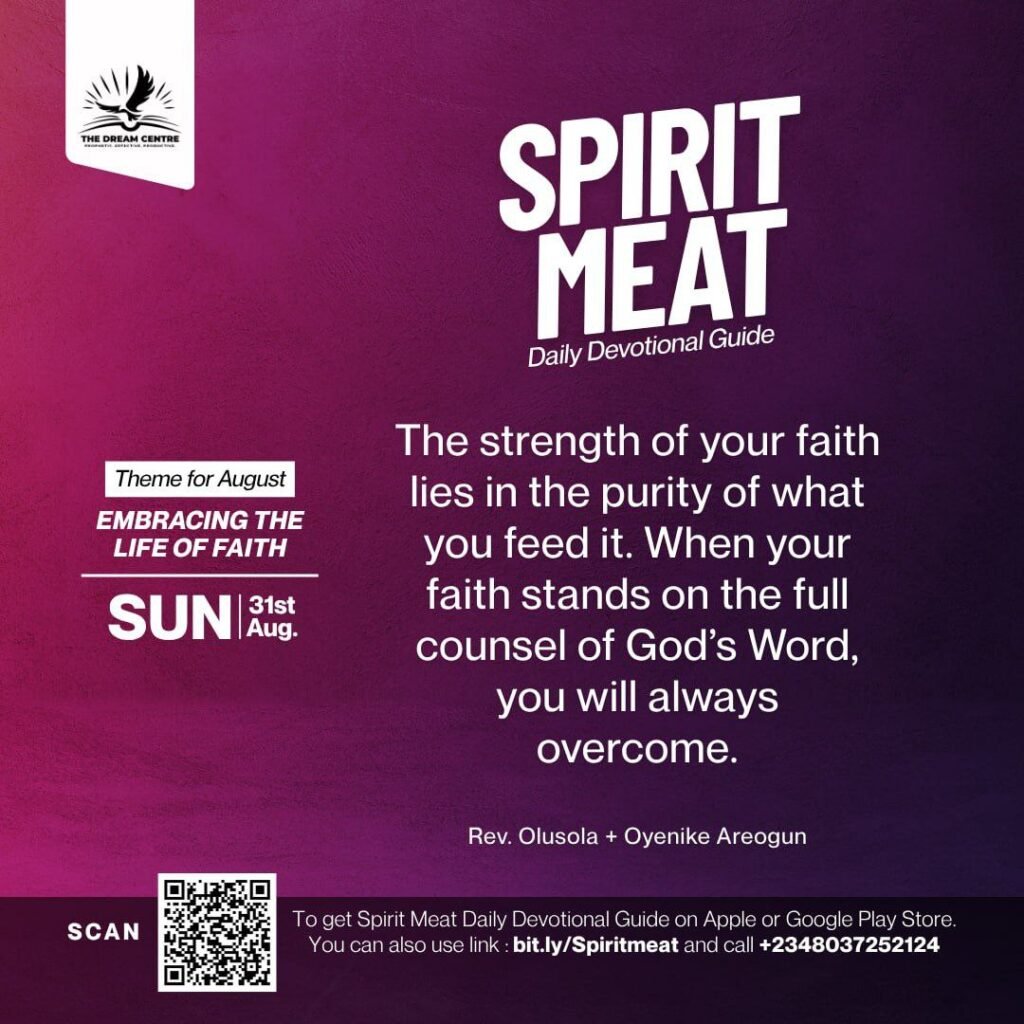 So, when you hear any doctrine that makes you feel stuck, discouraged, or condemned—check it. Is it rooted in truth or coloured by human reasoning? Let no teaching settle in your heart if it undermines what Christ came to accomplish in your life. You are called to a higher life—a life of victory, growth, and purpose. Protect your heart from any teaching that denies you that reality. The strength of your faith lies in the purity of what you feed it. When your faith stands on the full counsel of God’s Word, you will always overcome.