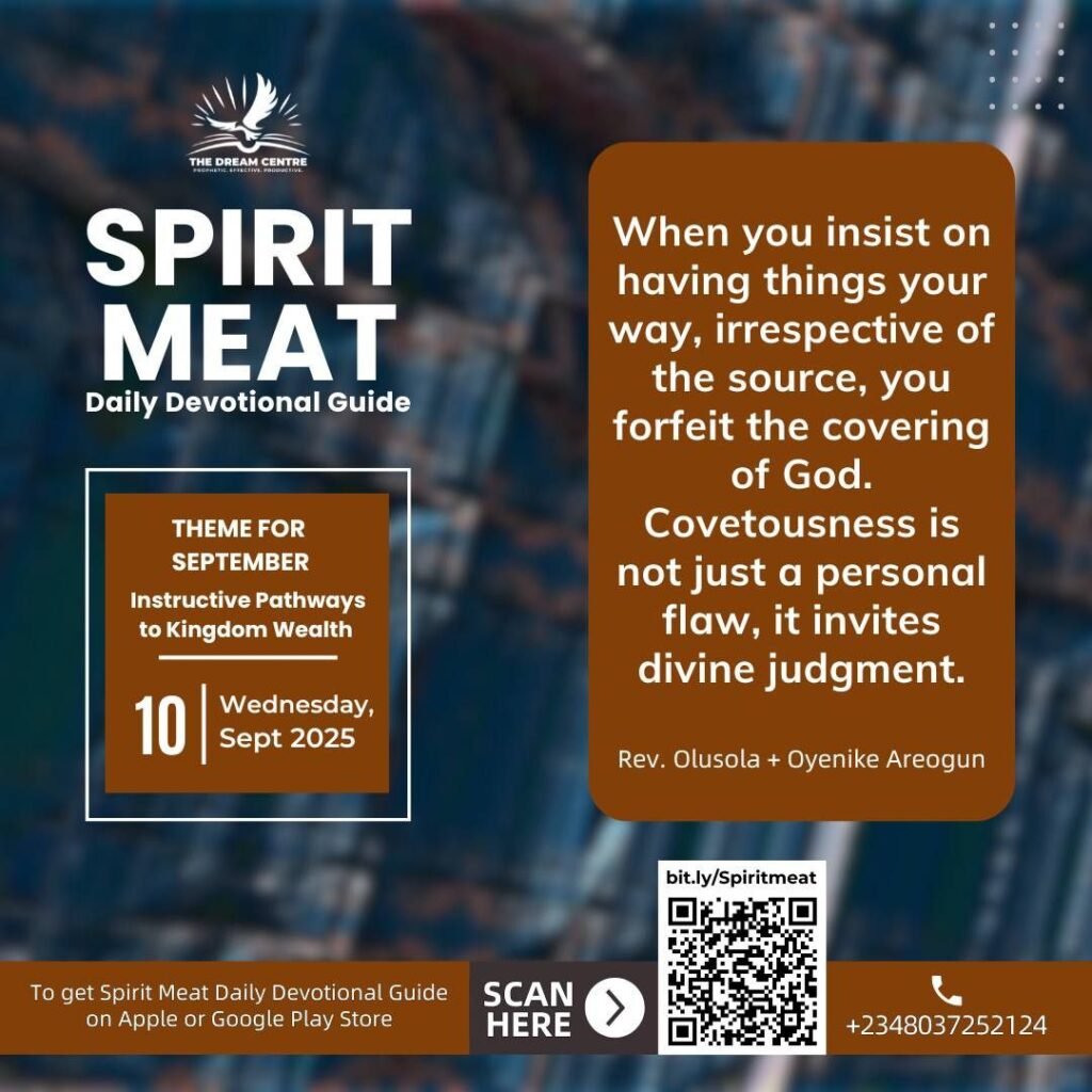 When you insist on having things your way, irrespective of the source, you forfeit the covering of God. Covetousness is not just a personal flaw—it invites divine judgment. Never allow desperation to override discernment. If it didn’t come from God, it’s not worth having. May the treasures of this world lose their grip on your soul, and may you find joy in the authentic provisions of Jehovah.