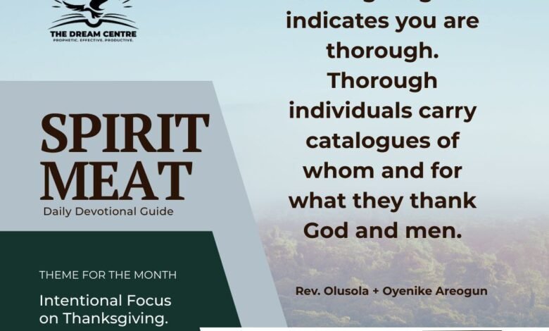 Thanksgiving also indicates you are thorough. Thorough individuals carry catalogues of whom and for what they thank God and men. We read entire pages in the newspapers dedicated to thanksgiving after massive happenings; if we thank men, how much more should we to return to give praise to the God from heaven? Distinguished men know who to thank. Do not bumble through life as if the world owes you an explanation. That entitlement is satanic; it drains the heart of humility. So look back in your journey and trace the fingerprints of God — then react.