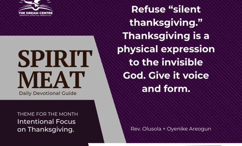 Also, refuse “silent thanksgiving.” Thanksgiving is a physical expression to the invisible God. Give it voice and form. The woman with the alabaster box broke her perfume openly, and the Lord established her act as a perpetual memorial (Matt. 26:13). Let your gratitude intimidate the devil and encourage the saints. Speak it in prayer, sing it in worship, testify in church, write it in a note, show up in person, or give a memorial seed — do not hide the faithfulness of God behind private feelings.