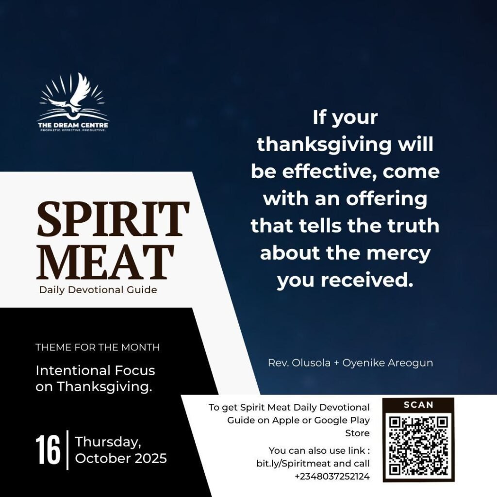 If your thanksgiving will be effective, come with an offering that tells the truth about the mercy you received. David said, “Of thine own have we given thee” (1 Chr. 29:14, KJV); what we bring is still His, but He weighs our hearts in it. I want you to refuse “insulting thanks” — tokens that minimise God’s intervention or separate gift from heart. David also said, “Neither will I offer burnt offerings… of that which doth cost me nothing” (2 Sam. 24:24, KJV). Let your thanksgiving be commensurate with the miracle: name it with precise words, honour it with a fitting seed, and present it with a posture that befits the King who helped you.