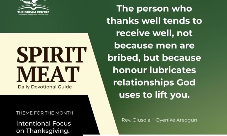 The person who thanks well tends to receive well, not because men are bribed, but because honour lubricates relationships God uses to lift you.