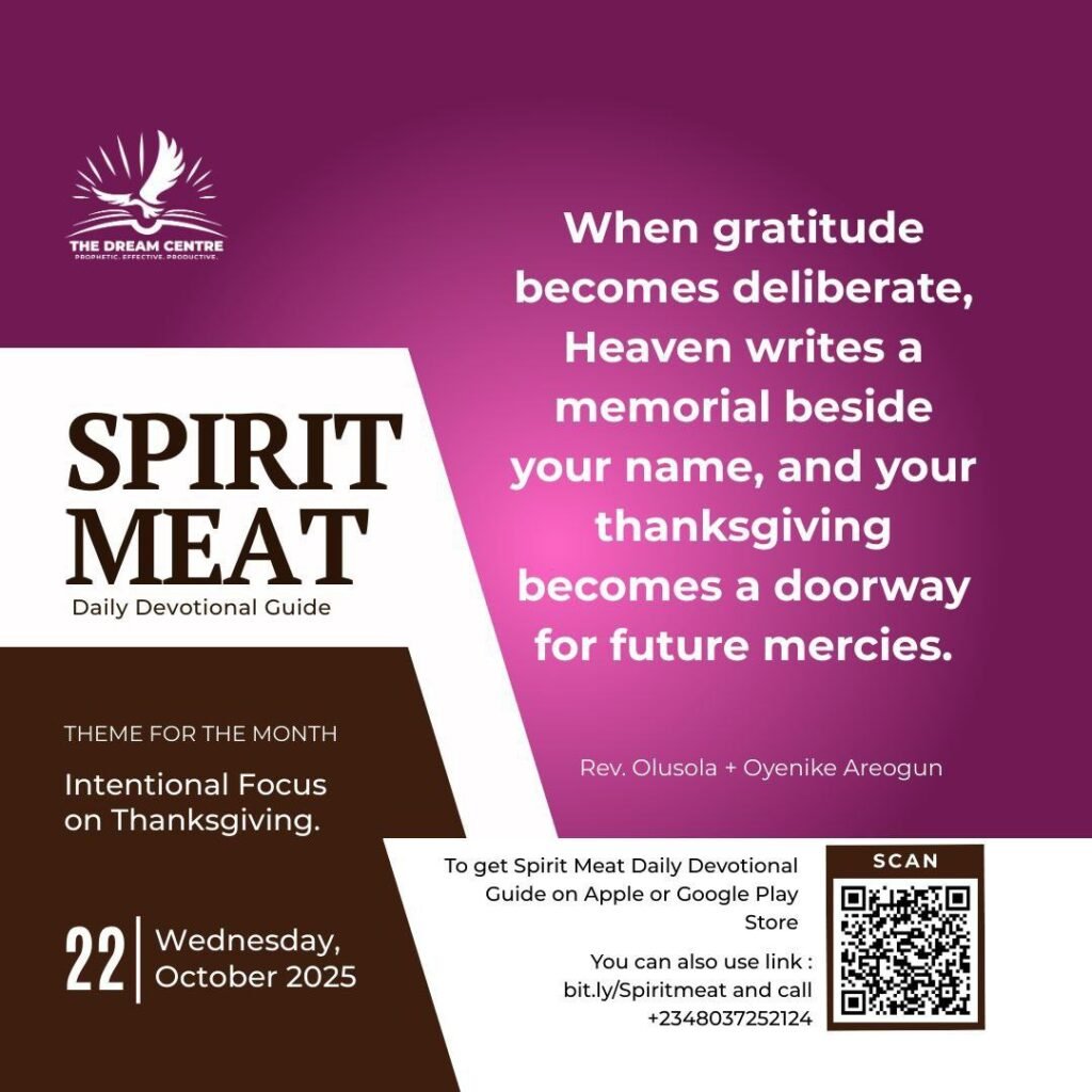 Practically, guard your altar. Before you go to worship, reconcile where necessary; silence the arguments; ask the Spirit to purify motive and posture. Decide ahead what you are thanking God for and what expression fits its weight — a testimony, a memorial seed, a visit to honour a channel, an hour prostrate before the Lord. In church, never look down on those whose thanksgiving is intense; you do not know their backstory. Let your response be costly, precise, and prompt. When gratitude becomes deliberate like this, Heaven writes a memorial beside your name, and your thanksgiving becomes a doorway for future mercies.
