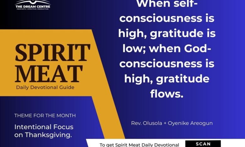 When self-consciousness is high, gratitude is low; when God-consciousness is high, gratitude flows.