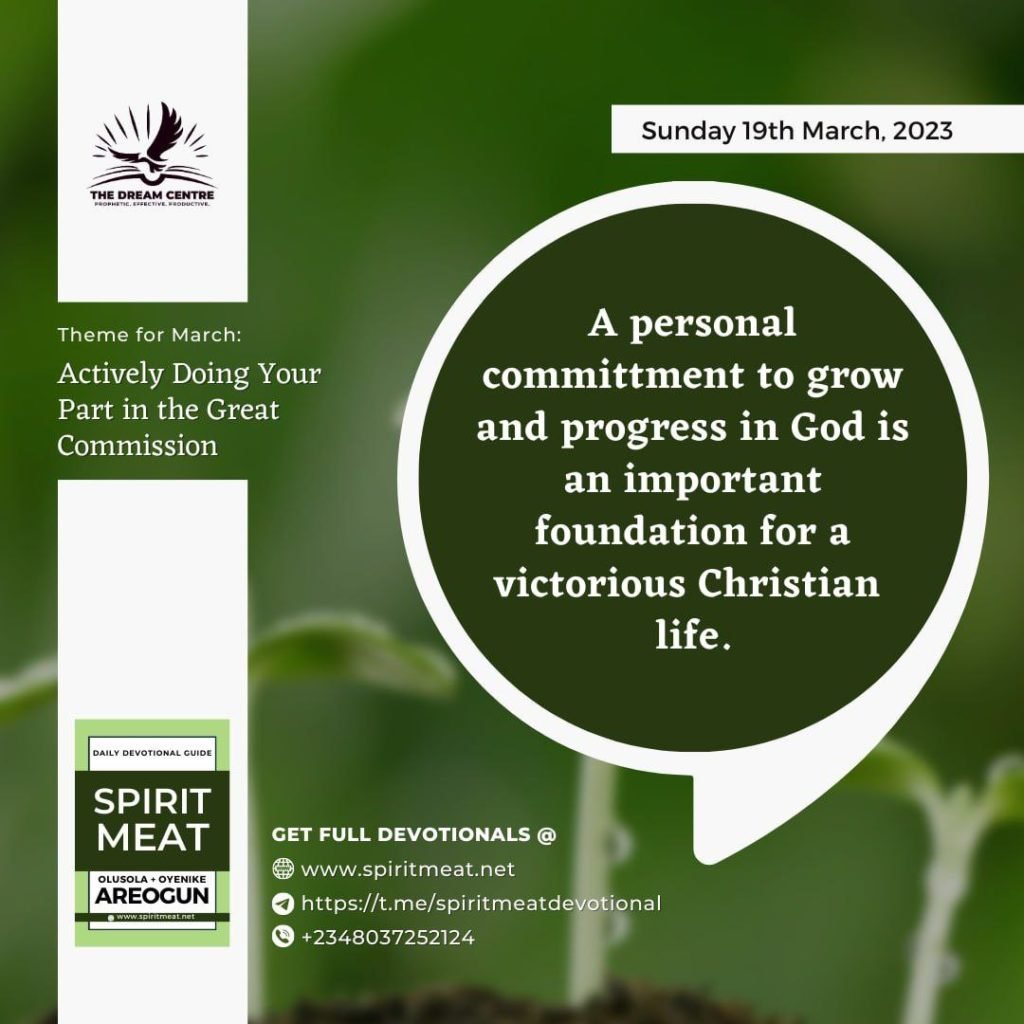 A personal commitment to grow and progress in God is an important foundation for a victorious Christian life. You must make a personal decision to be a growing Christian. Don’t be a social giant who is a spiritual midget. The foundation of human life on earth is the spiritual side, which gives you an advantage. Be the Christian that is so sound in every area of your life.